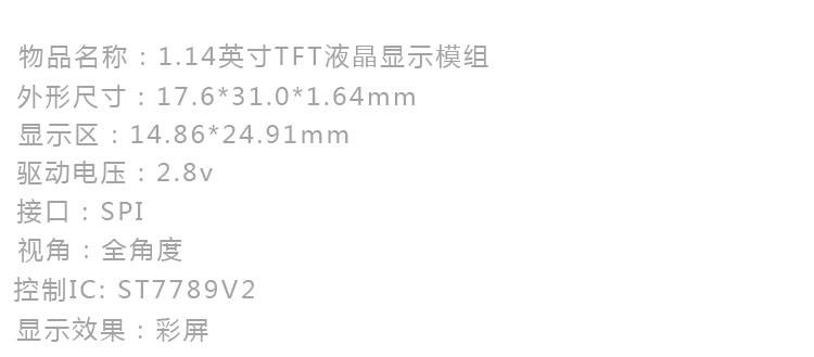 低功耗小尺寸液晶屏SPI接口135240像素1.14寸TFT彩屏lcd模组