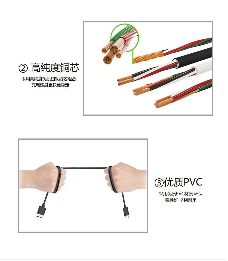 安卓充电线 V8数据线0.3米 micro usb数据线蓝牙安卓充电线国标