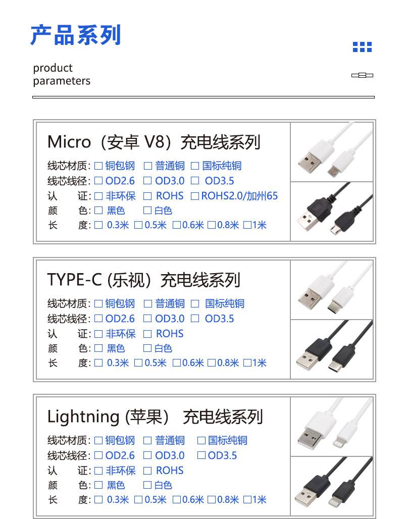 安卓v8充电线 USB micro两芯充电线0.5米蓝牙耳机充电宝配线50cm