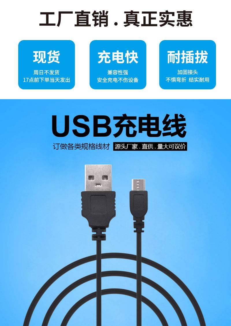 厂家直供50cm迈克充电线50公分小风扇 蓝牙耳机充电线V8线安卓线