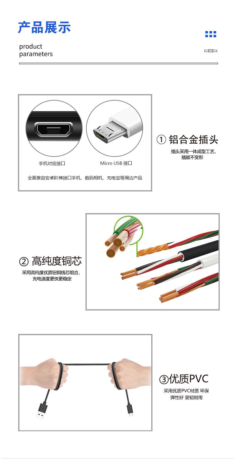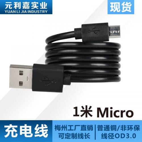 厂家PVC材质1米2芯安卓数据线1A充电线 mrco usb数据线配机线