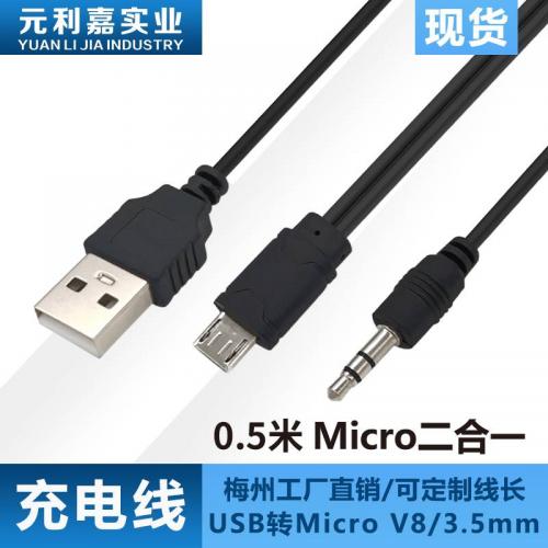 二合一音箱音响充电线连接线 音频线一分二USB转安卓microV8 3.5m