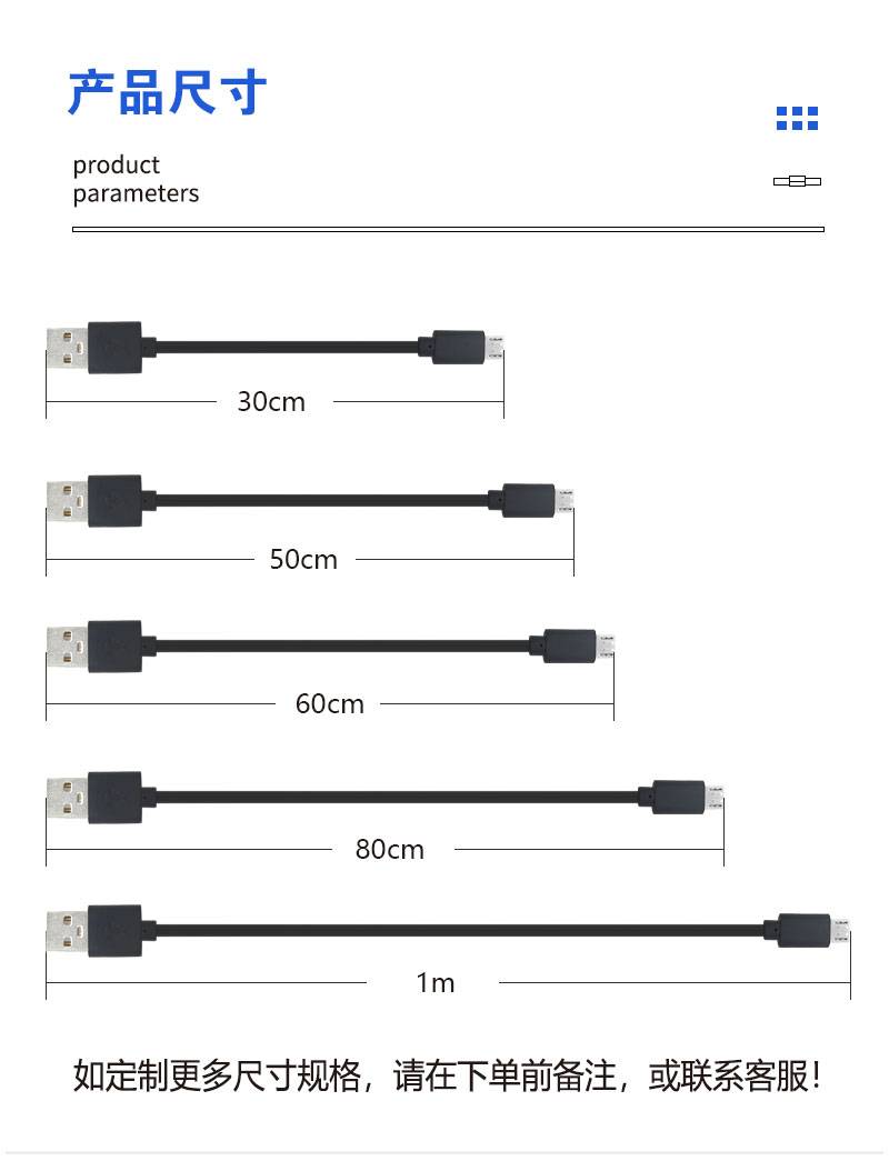 安卓v8充电线 USB micro两芯充电线0.5米蓝牙耳机充电宝配线50cm