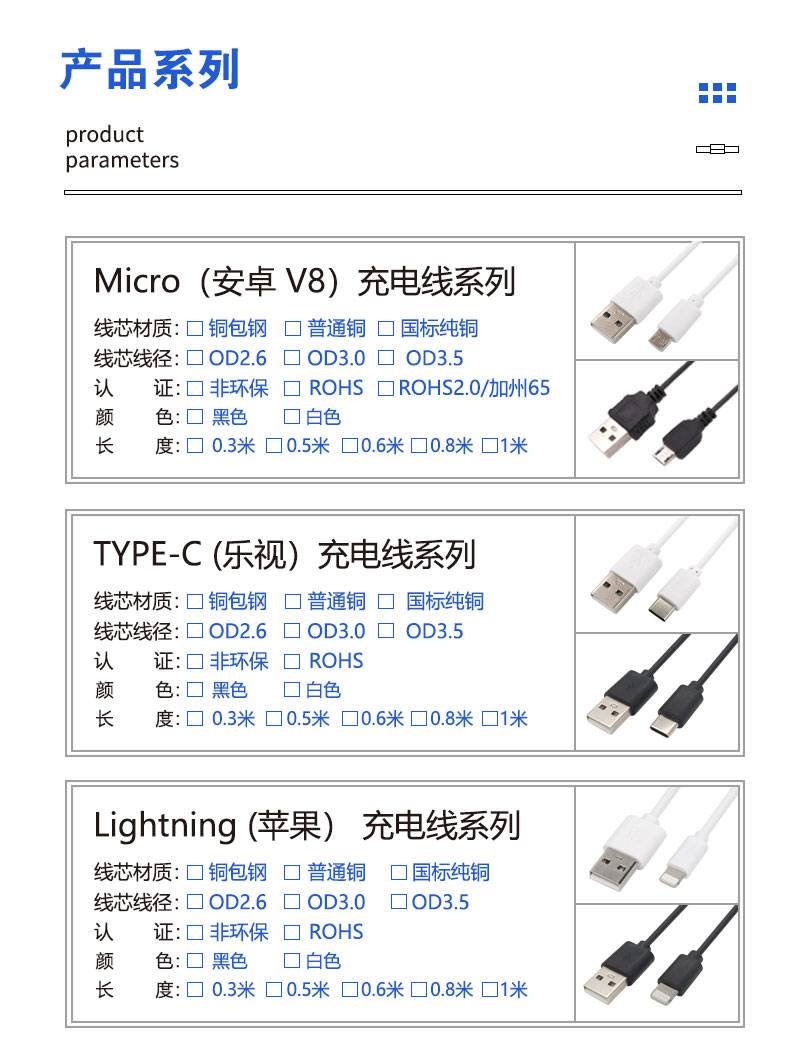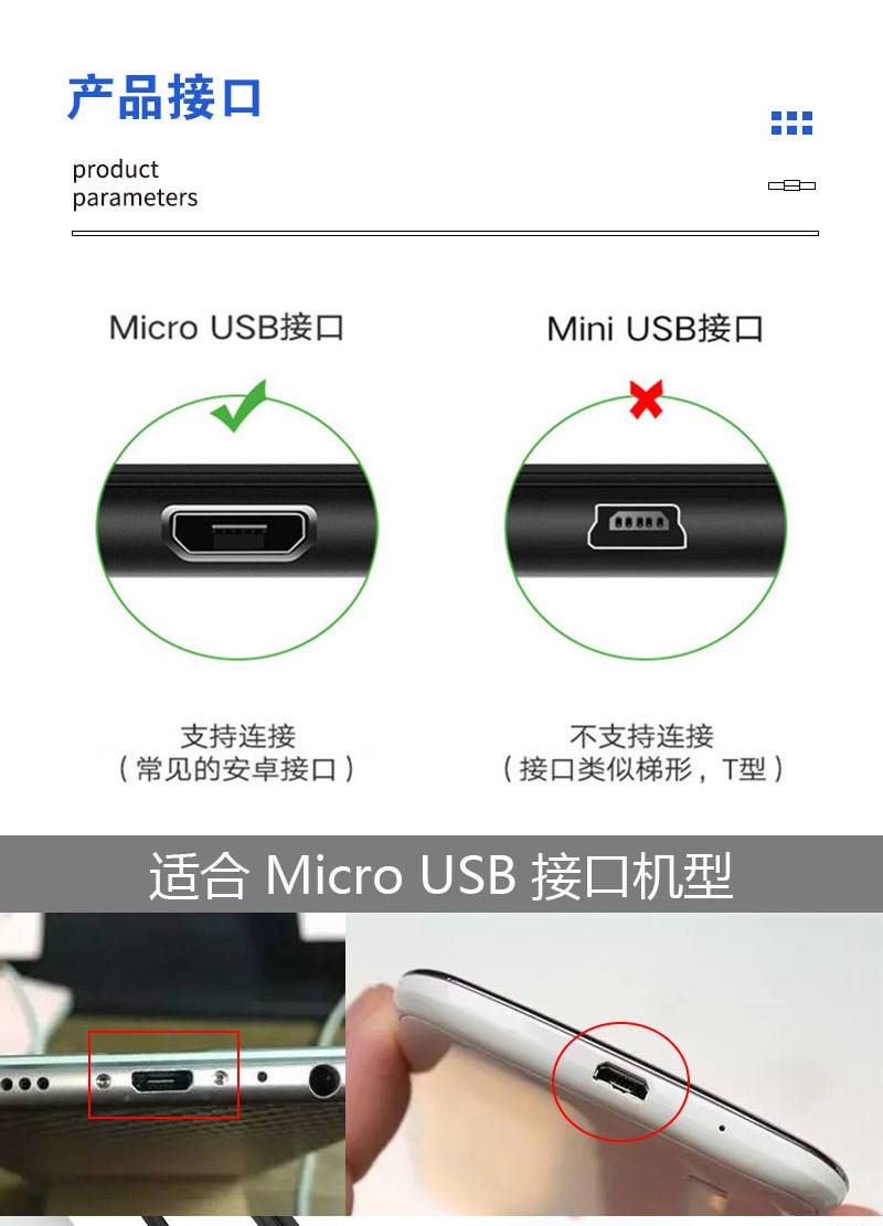 安卓v8充电线 USB micro两芯充电线0.5米蓝牙耳机充电宝配线50cm