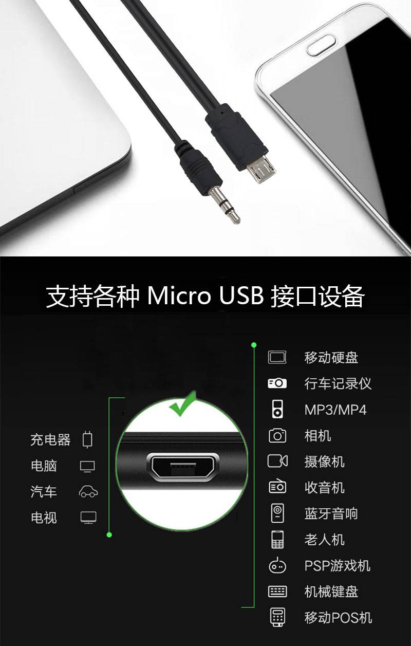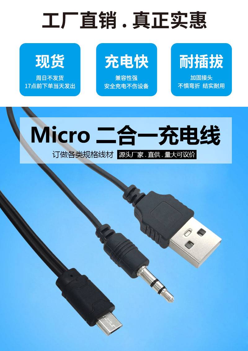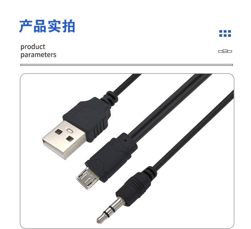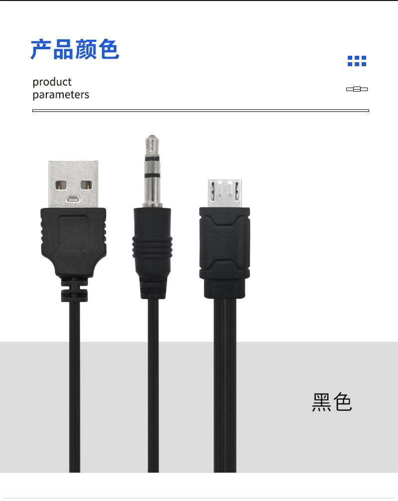 二合一音箱音响充电线连接线 音频线一分二USB转安卓microV8 3.5m