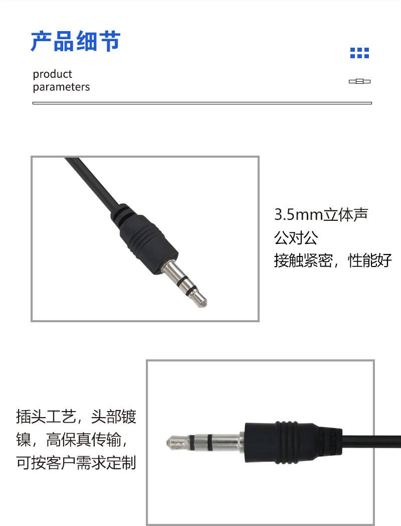 工厂直销 0.5米 立体声3.5mm音频线公对公 AUX车载音频转接线
