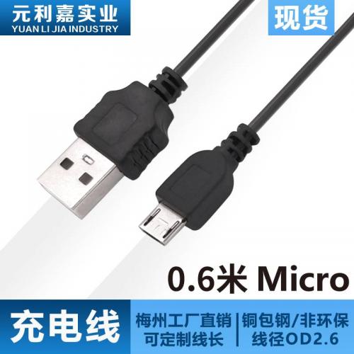 自产自销60cm安卓充电线V8电源线 micro充电线注塑USB充电线0.6米