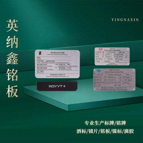 深圳市英纳鑫铭板技术开发有限公司是一家专门生产五金(包括铝,铜,锌合金等压铸铭牌及五金冲压件,手机外壳)酒标,徽章胸章吊牌水晶滴胶,PC/PVC/PET/PMMA各类印刷面板及薄膜开关,彩色印刷,金属产品的氧化,喷砂,拉丝,过油,高光等表面处理的企业,产品广泛应用于各类家电,音箱电脑,酒类包装,运动器材,高级模型及高档玩具等产品。公司占地面积5000多平方米,员工人数150多人,拥有德国、台湾、日本、超精确的高光拉纹、油压设备数十台,冲压设备30余台,全自动丝印机两台半自动丝印机十余台,四色平版印刷机两台,另还购进了目前国外多种先进的铭板生产设备,同时还拥有各种先进的高级音响面板工艺处理设备、铝片刷线,压花着以满足不同客户的需色能够在最短的时间内完成样品及货物,求,确保产品质量和交期。