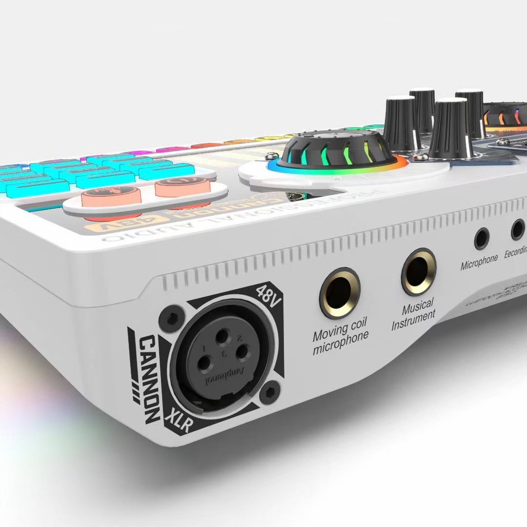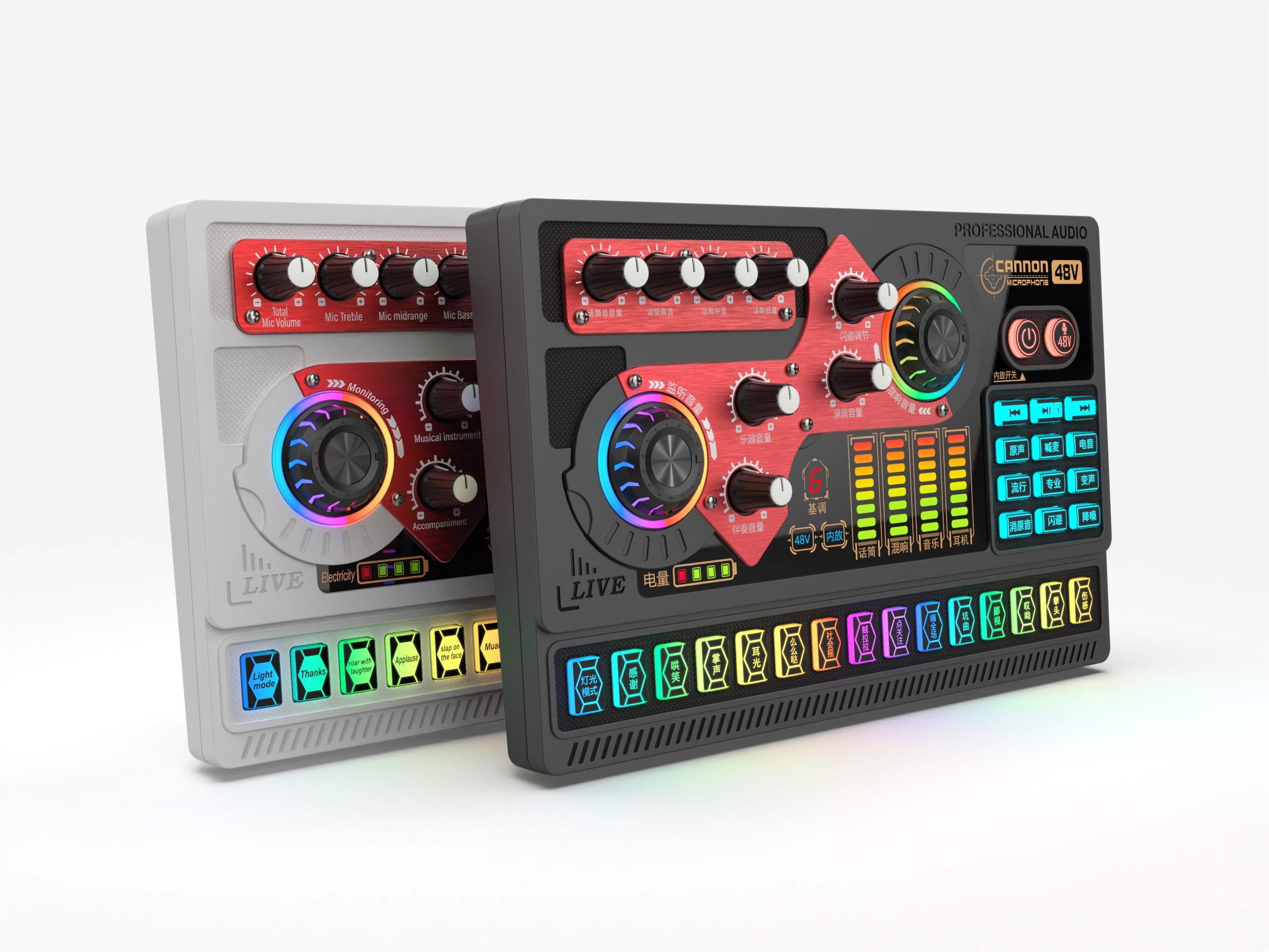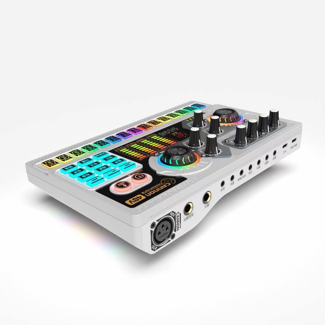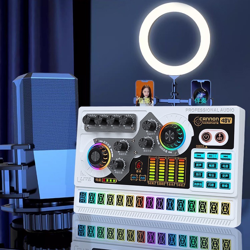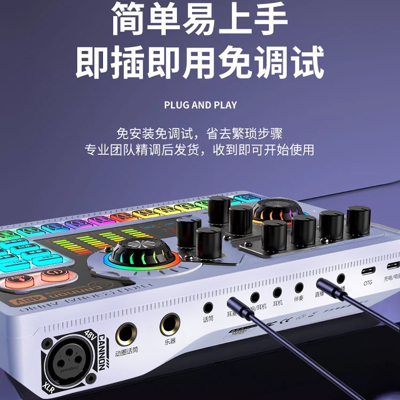 跨境优选K300全英文直播声卡,手机电脑通用带彩灯效果