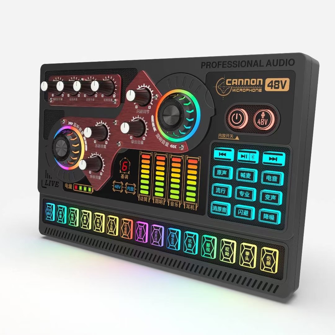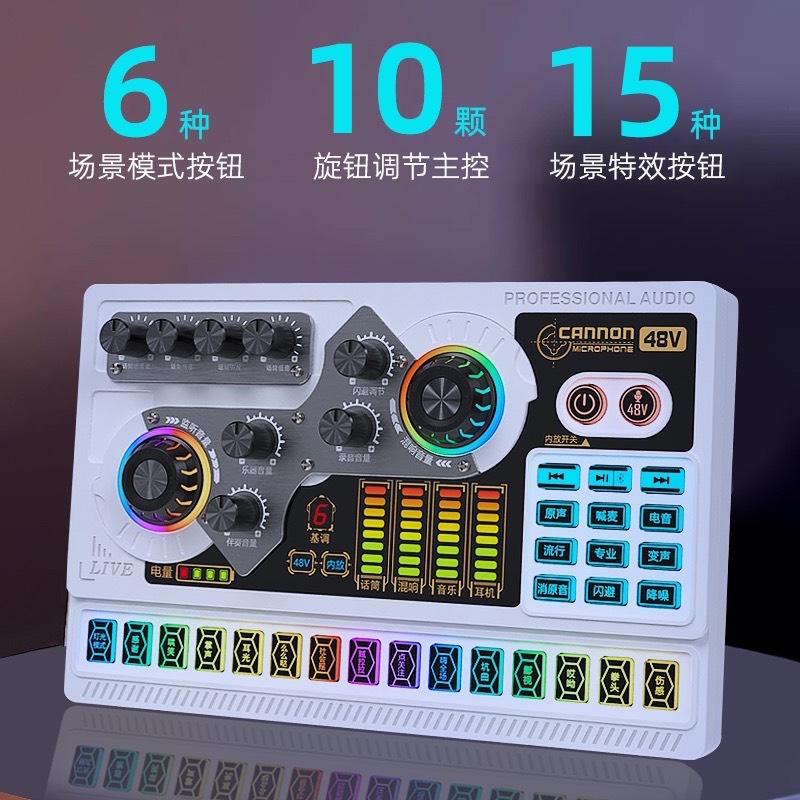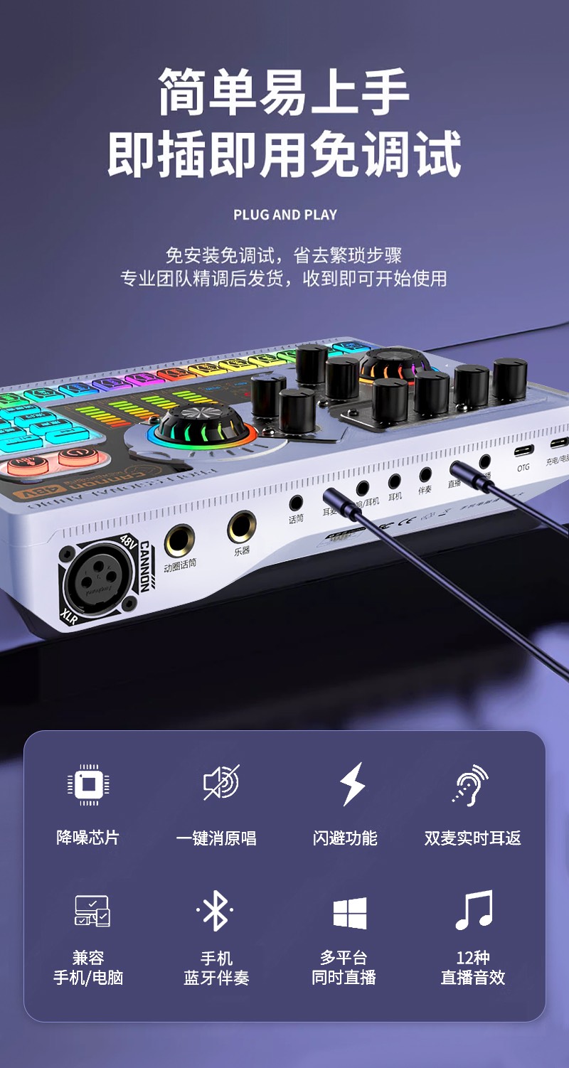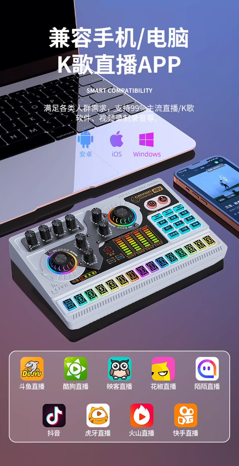 跨境K500全英文直播声卡专用手机电脑通用,兼容多平台直播