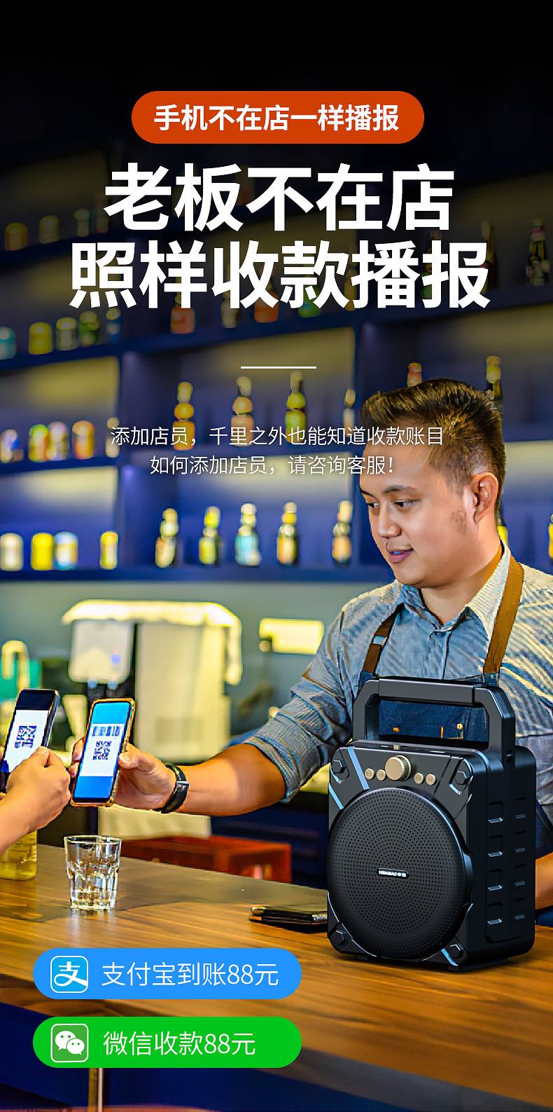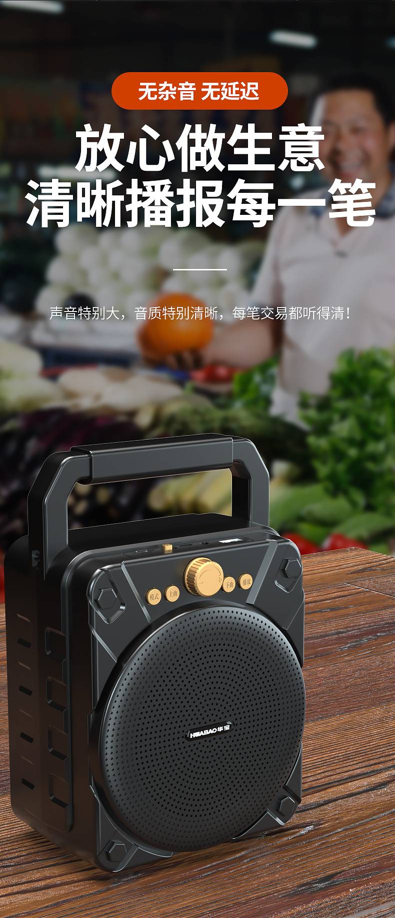 华宝806菜市场收款音响支付宝店铺专用微信二维码收钱提示收付款语音播报器商家用便携式小型大音量充电无线蓝牙音箱
