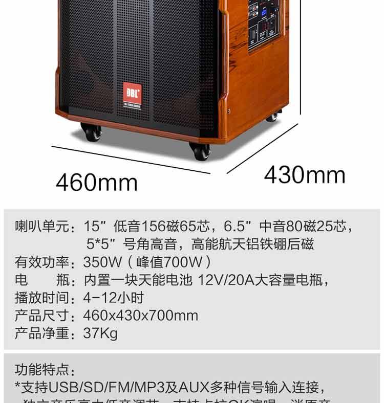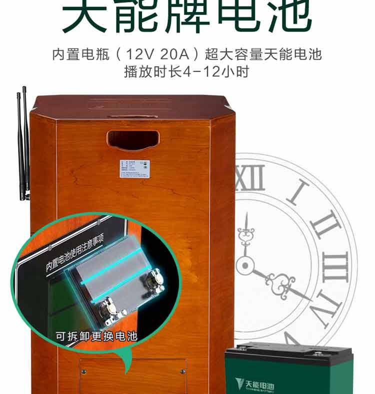 内置电瓶:12V 20A超大容量天能电池,播放时长4-12小时