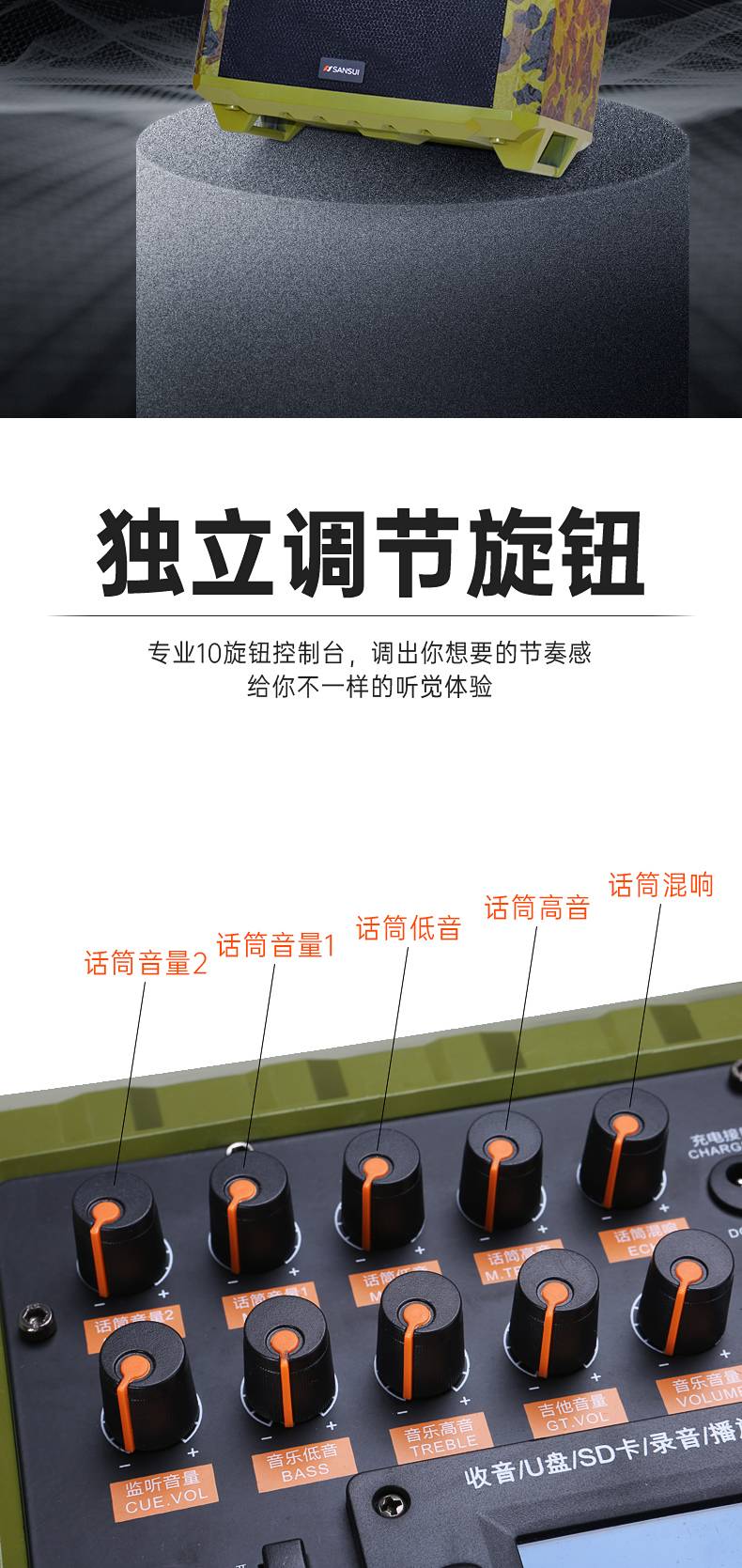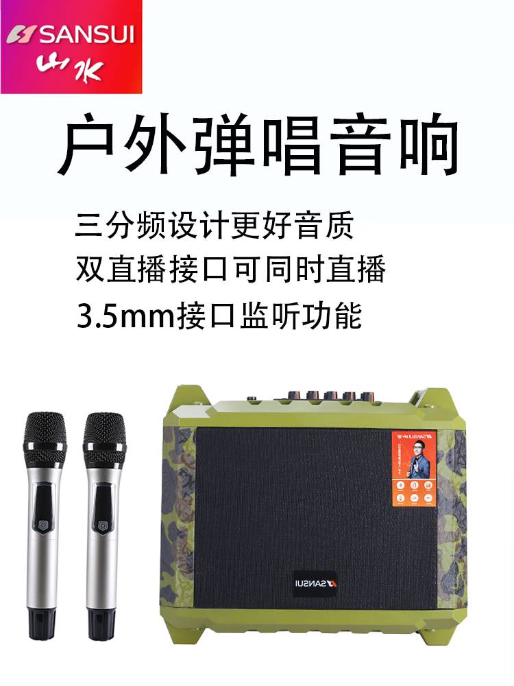 山水广场舞手提音响户外直播弹唱K歌三分频便携大功率重低音音箱