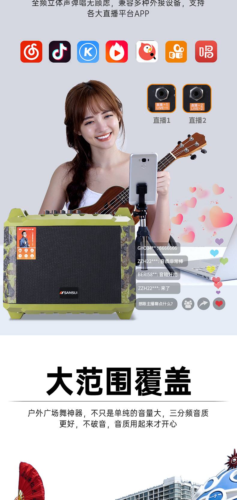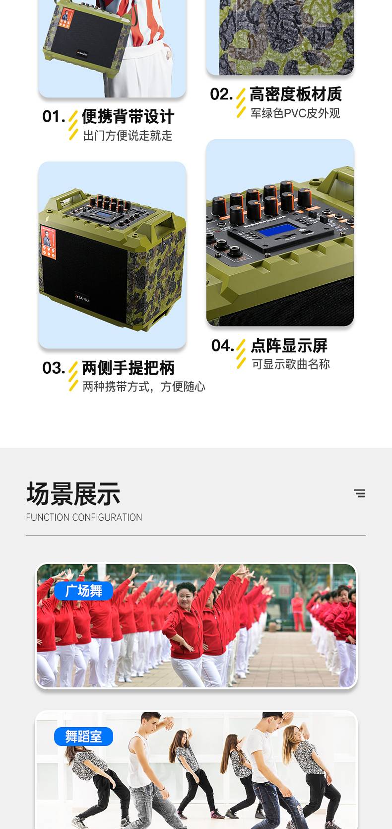 使用场景:广场舞 舞蹈室 活动促销 会议 小型会议主持 户外聚会演唱 直播 练歌等