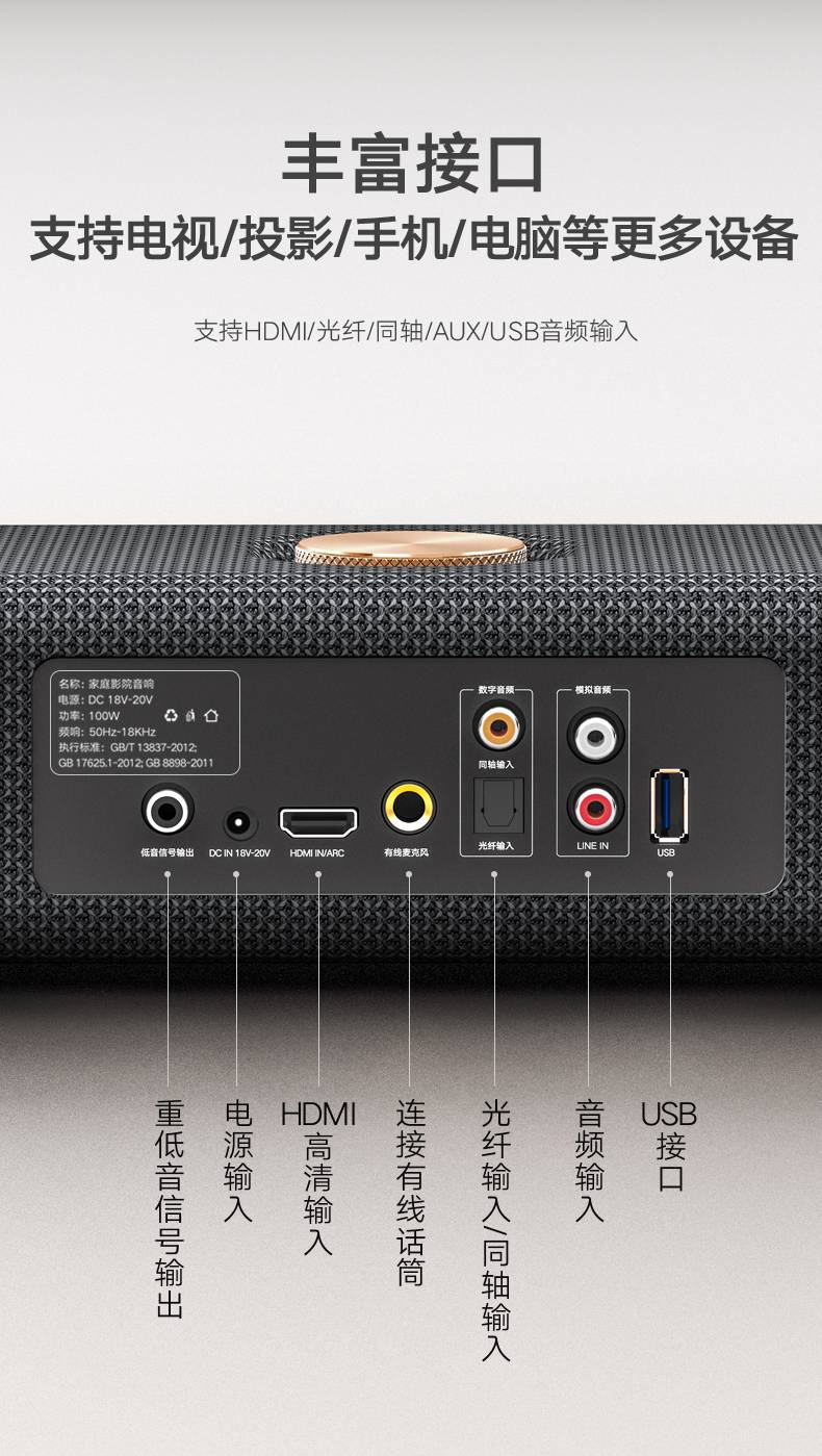 回音壁电视音响投影仪外接家庭影院套装杜比全景声小米音箱客厅用 月销 41