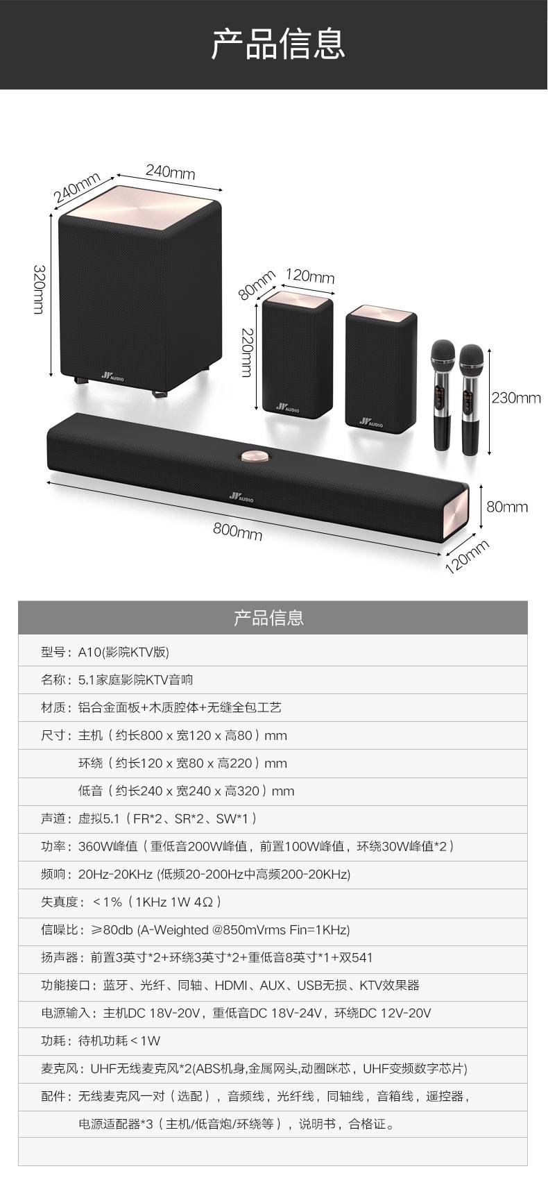 万音A10回音壁电视音响家庭影院套装无线环绕蓝牙家庭K歌外接音箱