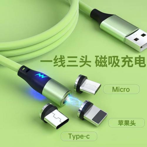 液态硅胶磁吸式数据线超级快充一拖三充手机充电线