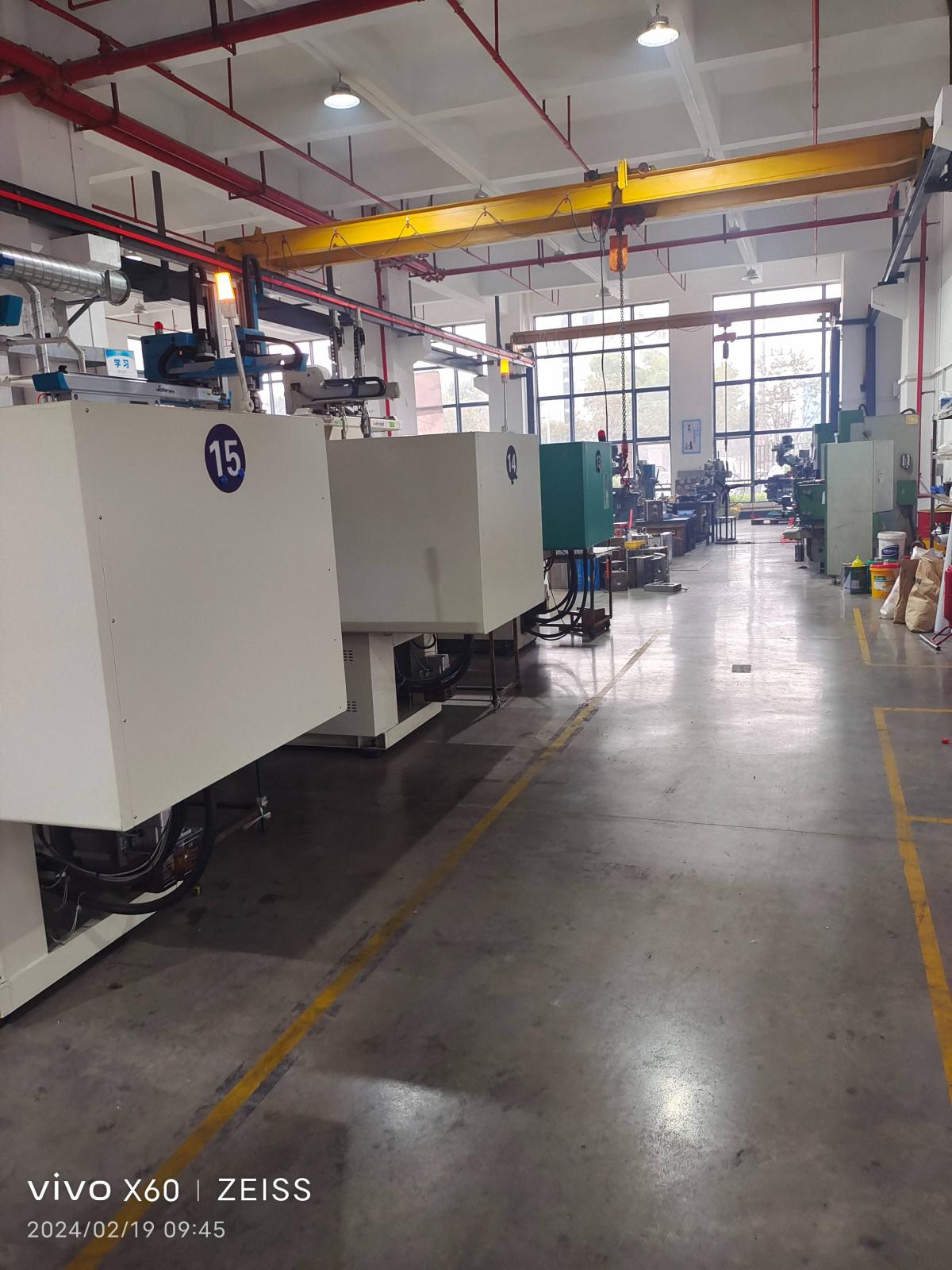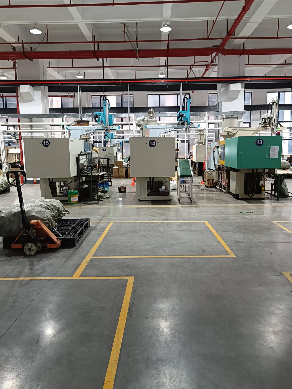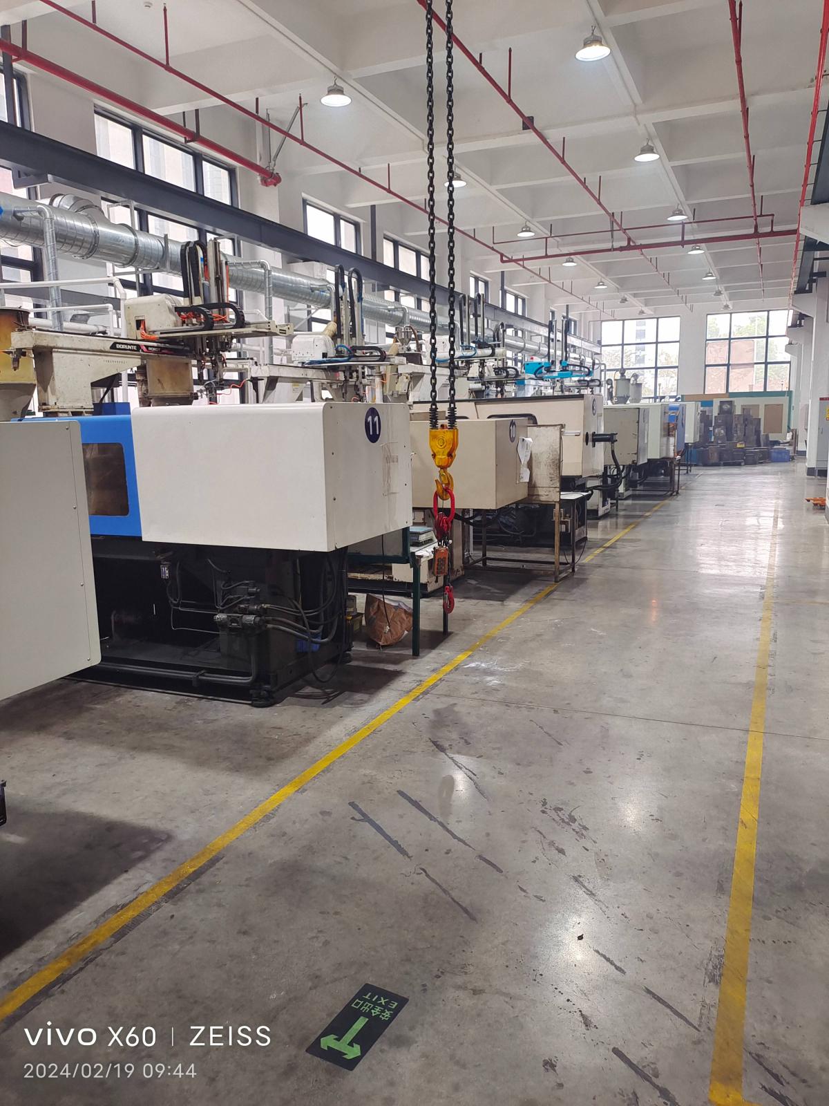 注塑机16台(海天机、力劲机等,80T-600T),每台机均配备机械手;全自动航车4条;多台火花机、铣床、磨床等设备。